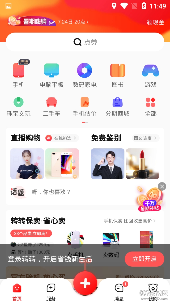 转转APP做二手交易,品类多。国内最早搞平台验机,叫“官方验”。